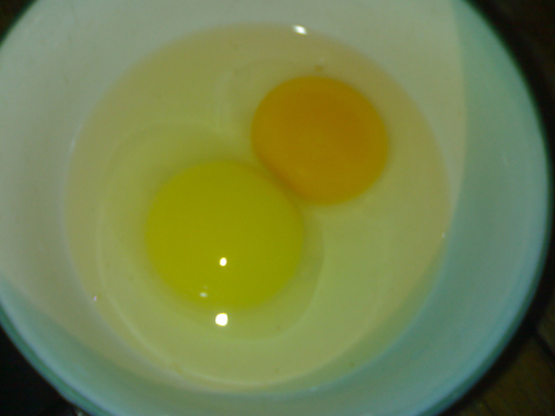 某天,我在厨房做饭,想做一个蒸蛋,取了一个圆鼓鼓很有手感的鸡蛋敲开了,哇,运气真好,双黄!我突然想到了女儿那个双胞胎的问题,就赶紧叫来了她。"hi, 小朋友,快来看,今天我们家里诞生了一对双胞胎!", 女儿显然还记得那天的情形,便一溜烟就跑过来了。”难得一见哦,你见过双黄的鸡蛋吗?“,”哦,真稀罕,真是两个蛋黄呢“。 我看机会来了,就给她说开了。