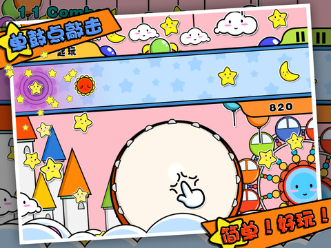 【概要描述】这是一款专为孩子设计的太鼓达人类的游戏,与常见的击鼓类游戏不同的是,这款游戏更加贴近孩子,简单易上手的操控、可爱有趣的音乐,一定会让孩子们爱不释手。