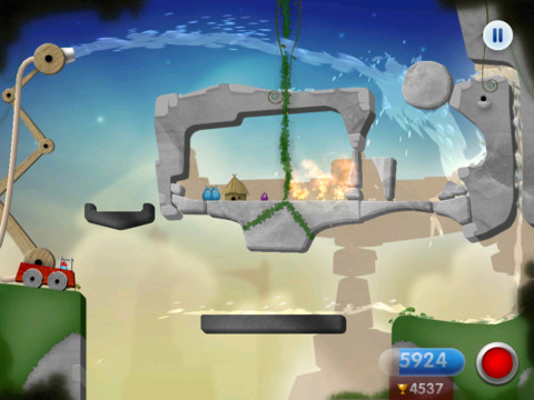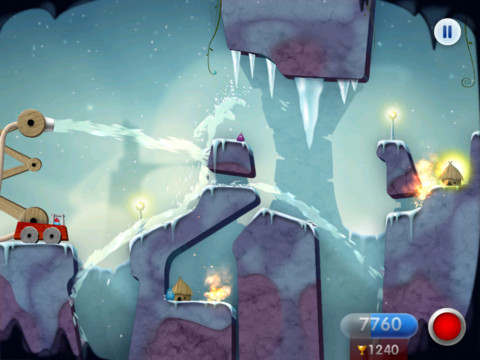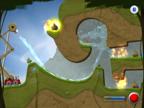 看到这个图标有没有觉得像是某个牙膏广告?告诉你这是就我们游戏的主角。游戏场景发生在土星的卫星土卫六(泰坦星)上,那里住着一群用秸秆搭建房屋的小东西们。然而由于各种因素,土星的光环里大大小小的光环物质冲向了泰坦星,变成了一个个火流星落向地面引起火灾。我们需要担任的是消防员的角色,调整好消防水管的高度和角度,避开各种障碍,用最少的水源扑灭大火。