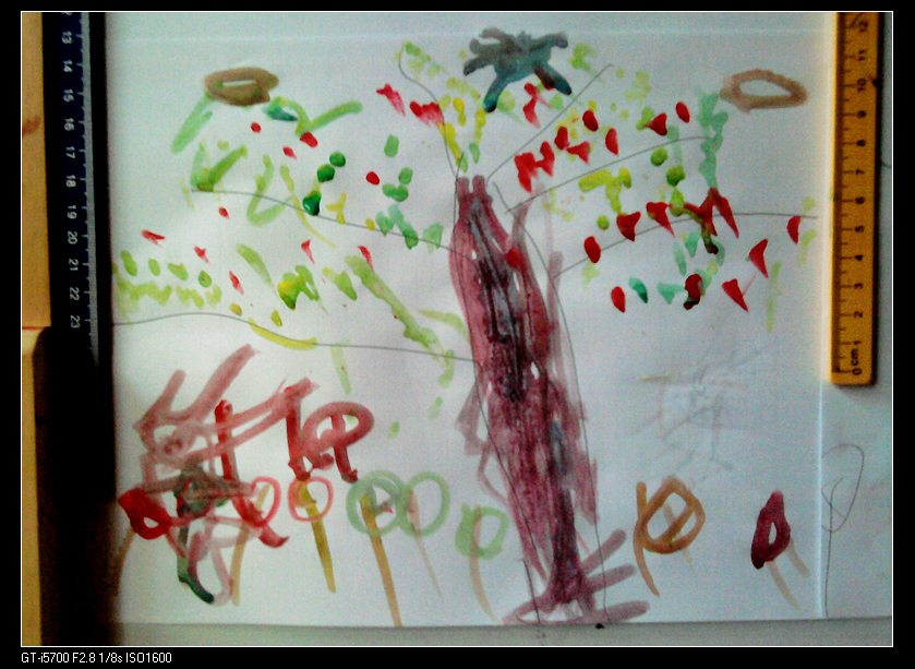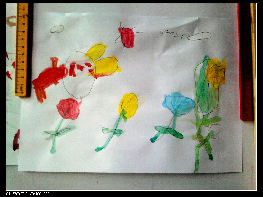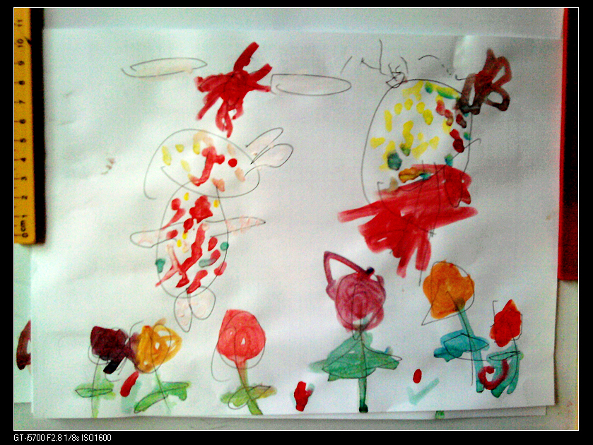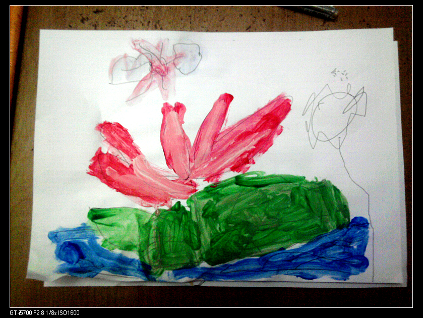 来看看宝宝的作品——虽然不够细腻,但婷毕竟才是个刚满3岁的孩子,她喜欢指着她的画给我们介绍。