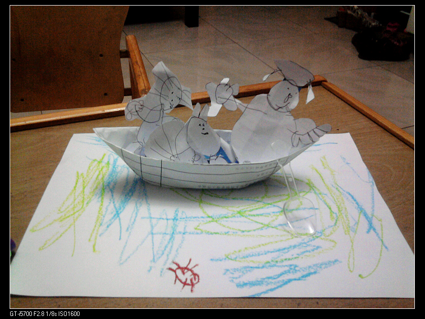孩子没有耐心把所有的小动物都画完,正好,我这条破船也坐不下那么多人,所以,兴尽而止。