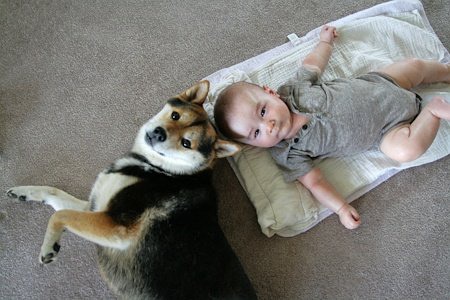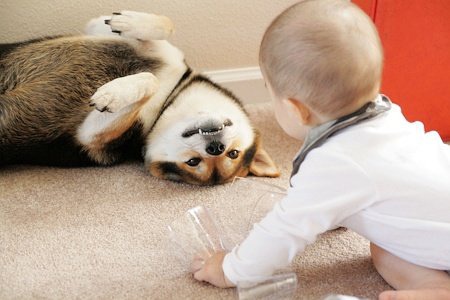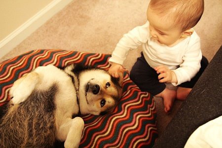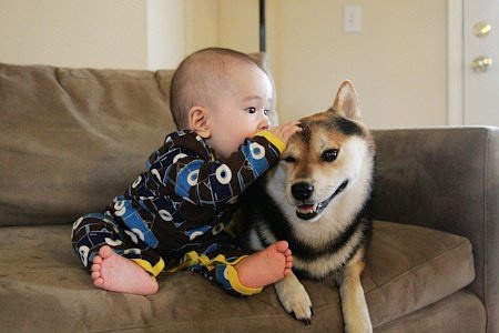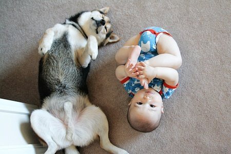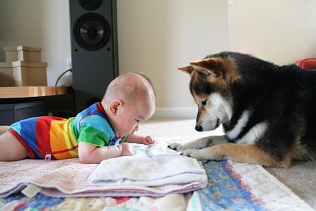 最近在网上看到这组图片,太有爱了,对宝宝和宠物这两样萌物毫无抵抗力啊,忍不住转过来。