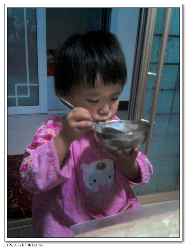 宝宝小的时候,吃饭是非常乖的,喂得痛快,吃得开心。可是后来,她喜欢上了听故事,呃,上厕所要听、吃饭时也要听,随了她几次心意后,发现她专心得听故事而顾不上吃饭了,赶紧停下来。然后呢,总得来说,还不错,可就是话越来越多,吃饭时间越拖越长。“食不言,寢不语”、“小心卡住”什么警告都没用,但愿上了幼儿园,能把这个毛病改过来。